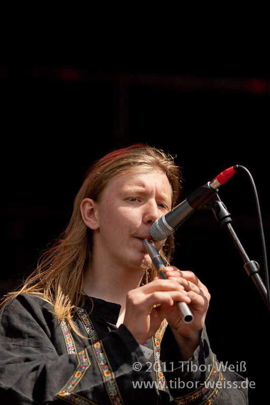 Masha bewegt sich trotz drückender Hitze und Fell auf der Schulter mehr als so manch anderer Frontmann