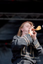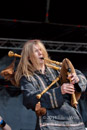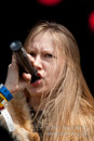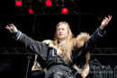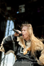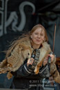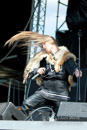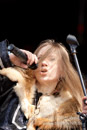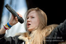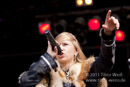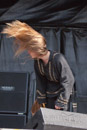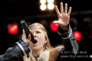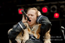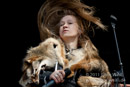 Masha bewegt sich trotz drückender Hitze und Fell auf der Schulter mehr als so manch anderer Frontmann